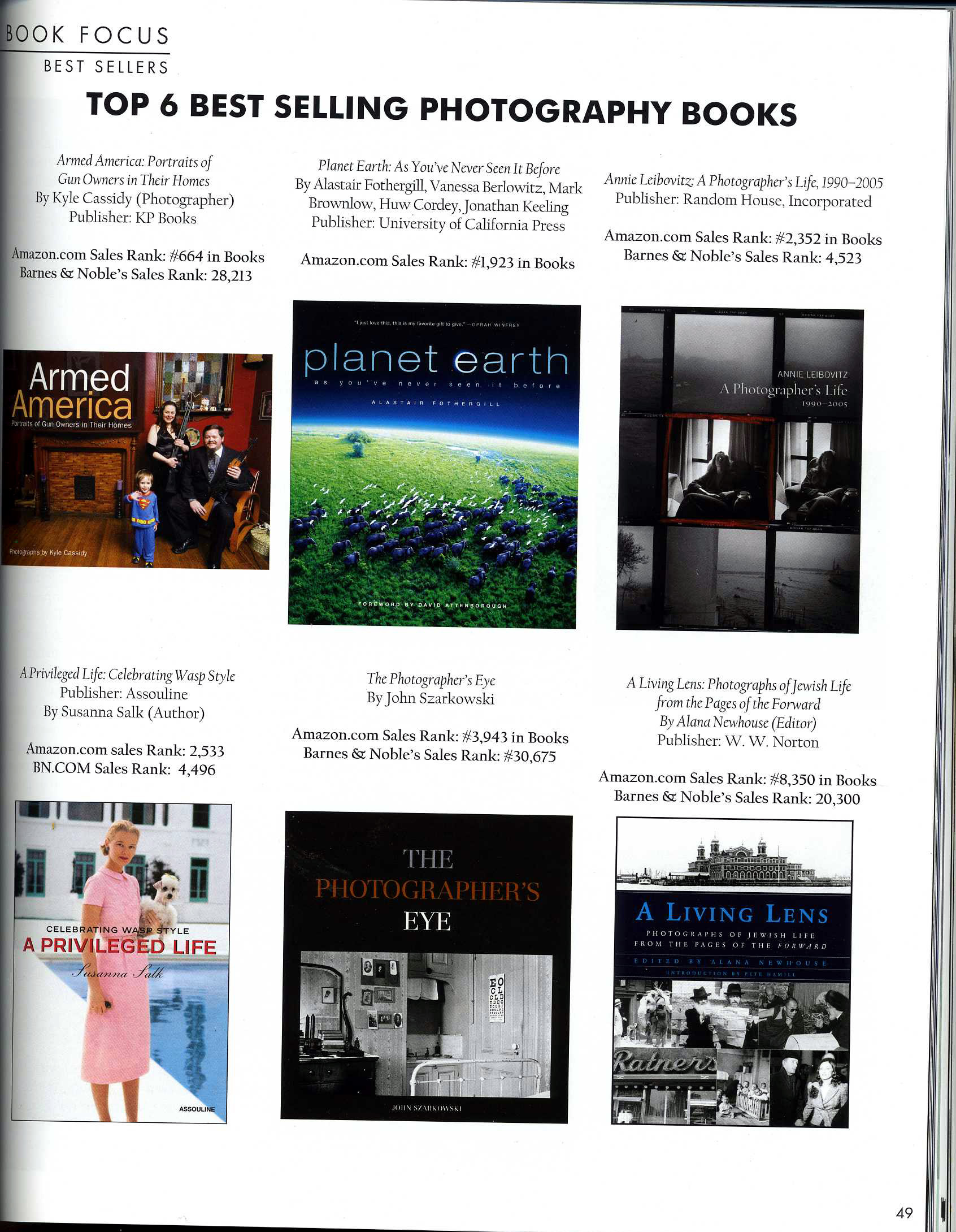 [Author Prev] [Author Next] [Thread Prev] [Thread Next] [Author Index] [Topic Index] [Home] [Search]> I'm really getting a photographic inferiority complex. [snip] Some of the > nature > movie images on the Planet Earth series are far better than anything I > have ever > taken, and to tell the truth, better than anything I've seen on the LUG > with > the possible exception of Doug Herr's birds and Jayanard's safari > pictures. [snip] >Don't watch these shows unless you have a very strong ego. Of course this >is all irrelevant >to street photographers. I guess I'll just have to look at football or >soccer instead. The LUG represents! For one brief shining moment, that probably lasted about 45 seconds, I was more popular than PLANET EARTH, luckily, it was the 45 seconds where they culled the "best-selling photography books" stats. http://www.armedamerica.org/press/focus-magazine-1.jpg I'm very uplifted by the yearbook photos -- it seems we have some very very excellent photographers on the lug -- just not all of them post images here very often. Do check out the yearbook, if you haven't. Kc