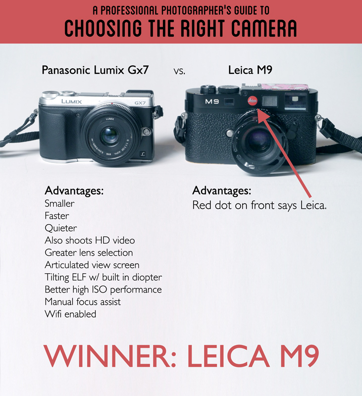 [Author Prev] [Author Next] [Thread Prev] [Thread Next] [Author Index] [Topic Index] [Home] [Search]I don't think that's a point-by-point comparison!! Tina On Mon, Nov 17, 2014 at 1:32 PM, kyle cassidy on the lug < leicaslacker at gmail.com> wrote: > A very interesting point-by-point comparison on choosing between a Leica > and other cameras for professional work: > > http://www.kylecassidy.com/lj/2014/how-to-choose-the-right-camera3.jpg > > I?m wondering if we?re all infuriated by the same thing. > > What are your thoughts? > > kc > > _______________________________________________ > Leica Users Group. > See http://leica-users.org/mailman/listinfo/lug for more information > -- Tina Manley www.tinamanley.com tina-manley.artistwebsites.com