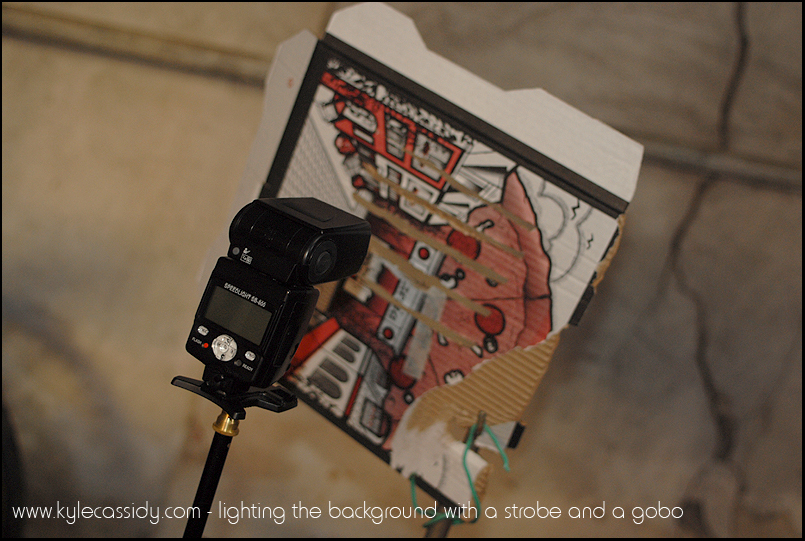 the background there was created by shooting a strobe through a gobo made
