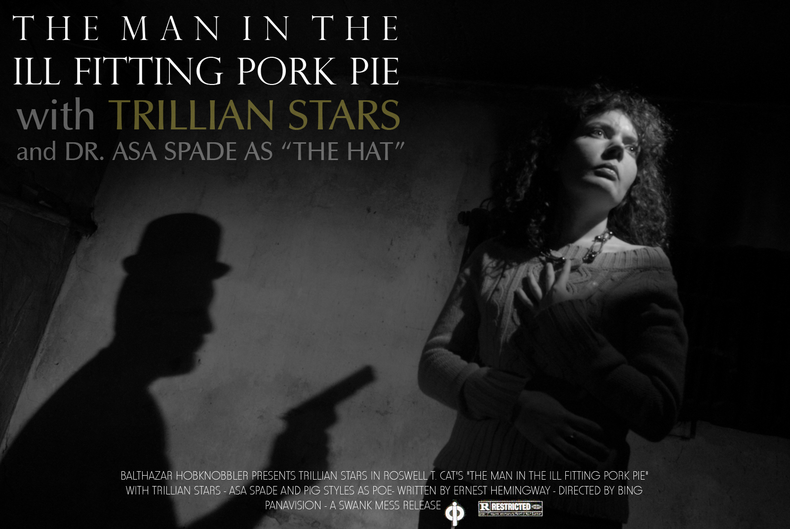 [Author Prev] [Author Next] [Thread Prev] [Thread Next] [Author Index] [Topic Index] [Home] [Search]Bing's first directorial debut???? Chris ----- Original Message ----- From: "Kyle Cassidy" <kcassidy@asc.upenn.edu> To: <lug@leica-users.org> Sent: Tuesday, December 25, 2007 6:42 PM Subject: [Leica] this is how we do xmas in these parts..... so ... when Trillian and i broke into our neighbors house early this morning and plucked all the goodies from under their tree, one of them was a fabulous TASCHEN book of film noir photos of Ingrid Bergman (who joins Fairuza Balk, Judit Polgar, Lillian Gish, Bongkoj Khongmalai, and Jenny Agutter* on the list of "TOP SIX HOTTEST WOMEN I AM NOT DATING"). some people might say "wow, neat book" but around here we just say "how the heck did they light that?" so trill and i spent the next five hours figuring out film noir lighting techniques in the studio. this features "mike the guy who lives next door" as the villain. http://www.kylecassidy.com/lj/2007/xmas-07.jpg kyle * sorry Elizabeth Sladen, there just isn't room. _______________________________________________ Leica Users Group. See http://leica-users.org/mailman/listinfo/lug for more information