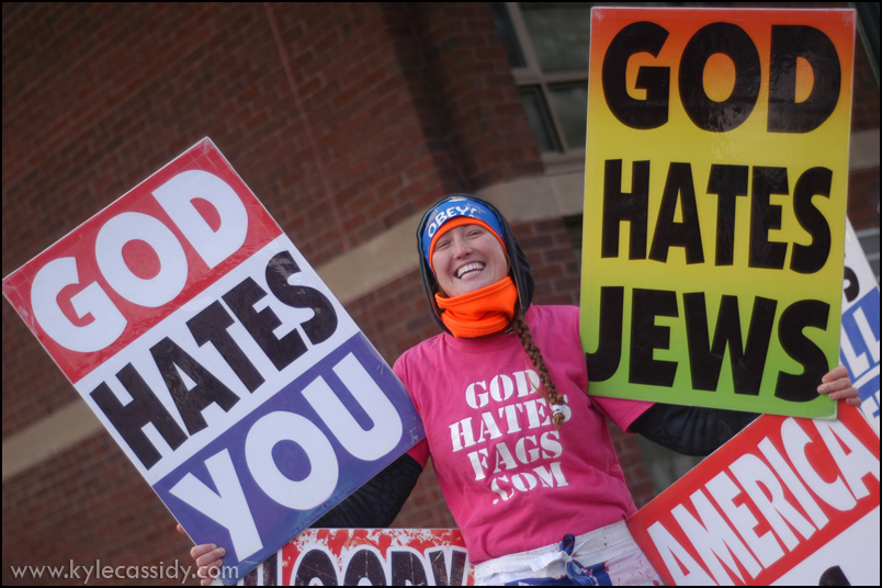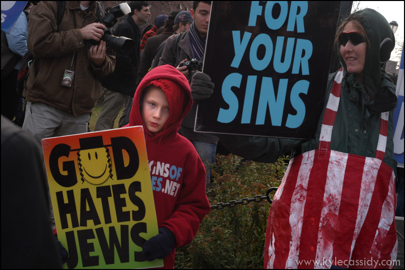 [Author Prev] [Author Next] [Thread Prev] [Thread Next] [Author Index] [Topic Index] [Home] [Search]Nathan, Fred Phelps is a radical preacher who, with his extended family, have their own church in Topeka, KS, and go all over the US espousing their hatred. He is best just ignored. His rallies are small, but very loud. Jim Nichols Tullahoma, TN USA ----- Original Message ----- From: "Nathan Wajsman" <photo at frozenlight.eu> To: "Leica Users Group" <lug at leica-users.org> Sent: Monday, December 07, 2009 1:04 PM Subject: Re: [Leica] leica spotted at fred phelps protest > Who is Fred Phelps? This is quite chilling, and, dare I say, > un-American... > > Nathan > > Nathan Wajsman > Alicante, Spain > http://www.frozenlight.eu > http://www.greatpix.eu > http://www.nathanfoto.com > > Books: http://www.blurb.com/bookstore/search?search=wajsman&x=0&y=0 > PICTURE OF THE WEEK: http://www.fotocycle.dk/paws > Blog: http://www.fotocycle.dk/blog > > > > On Dec 7, 2009, at 7:21 PM, Kyle Cassidy wrote: > >> Fred Phelps' Westboro Baptist Church people were in town today protesting >> "Antichrist Obama", homosexuals, and the entirety of the Jewish faith. >> How they're linked I'm not sure, but there were digital Leicas >> documenting it. >> >> http://www.kylecassidy.com/lj/2009/fredphelps7.jpg >> >> http://www.kylecassidy.com/lj/2009/fredphelps6.jpg >> >> http://www.kylecassidy.com/lj/2009/fredphelps2.jpg >> >> >> kc >> >> >> >> >> >> _______________________________________________ >> Leica Users Group. >> See http://leica-users.org/mailman/listinfo/lug for more information >> > > > _______________________________________________ > Leica Users Group. > See http://leica-users.org/mailman/listinfo/lug for more information > >