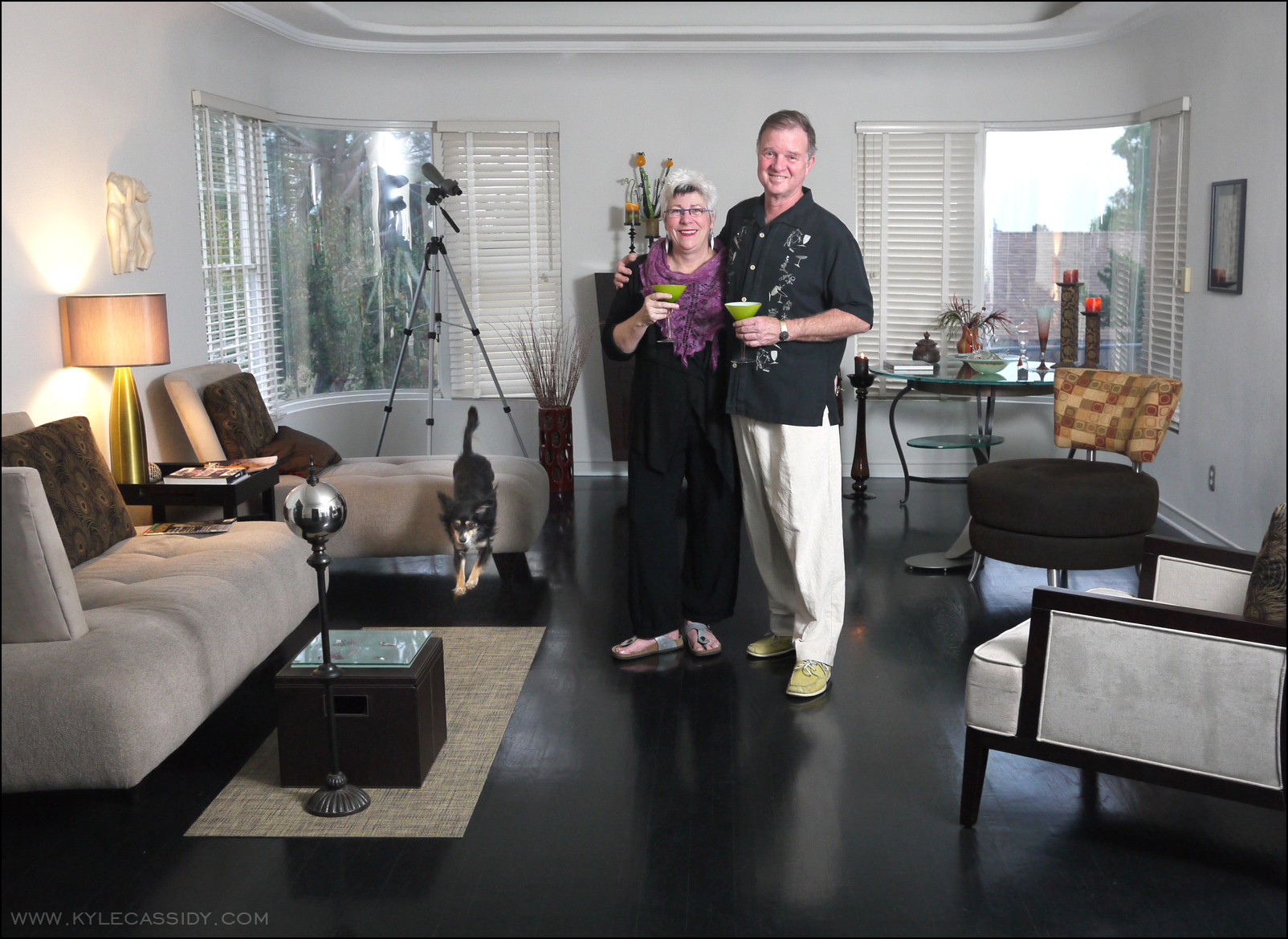 [Author Prev] [Author Next] [Thread Prev] [Thread Next] [Author Index] [Topic Index] [Home] [Search]I was in San Diego for the weekend teaching a photography workshop which is where I met Marcia and Mark who let me crash at their house. The place was a fabulous 40's vintage palace once owned by a Rodeo Star, complete with Bomb Shelter and walk-in-safe (the better to keep your Rodeo Trophies from falling into the hands of rustlers). As soon as I walked in the door I knew I wanted to make a portrait of them in their space. I did this with the Leica GF1 and the 40mm f 1.7 lens at about f 4 with an sb-800 through a small umbrella. Maya, the dog, is levitating under her own power. http://www.kylecassidy.com/lj/2010/san-diego-marcia-mark.jpg Hope y'all are swell. Kyle
