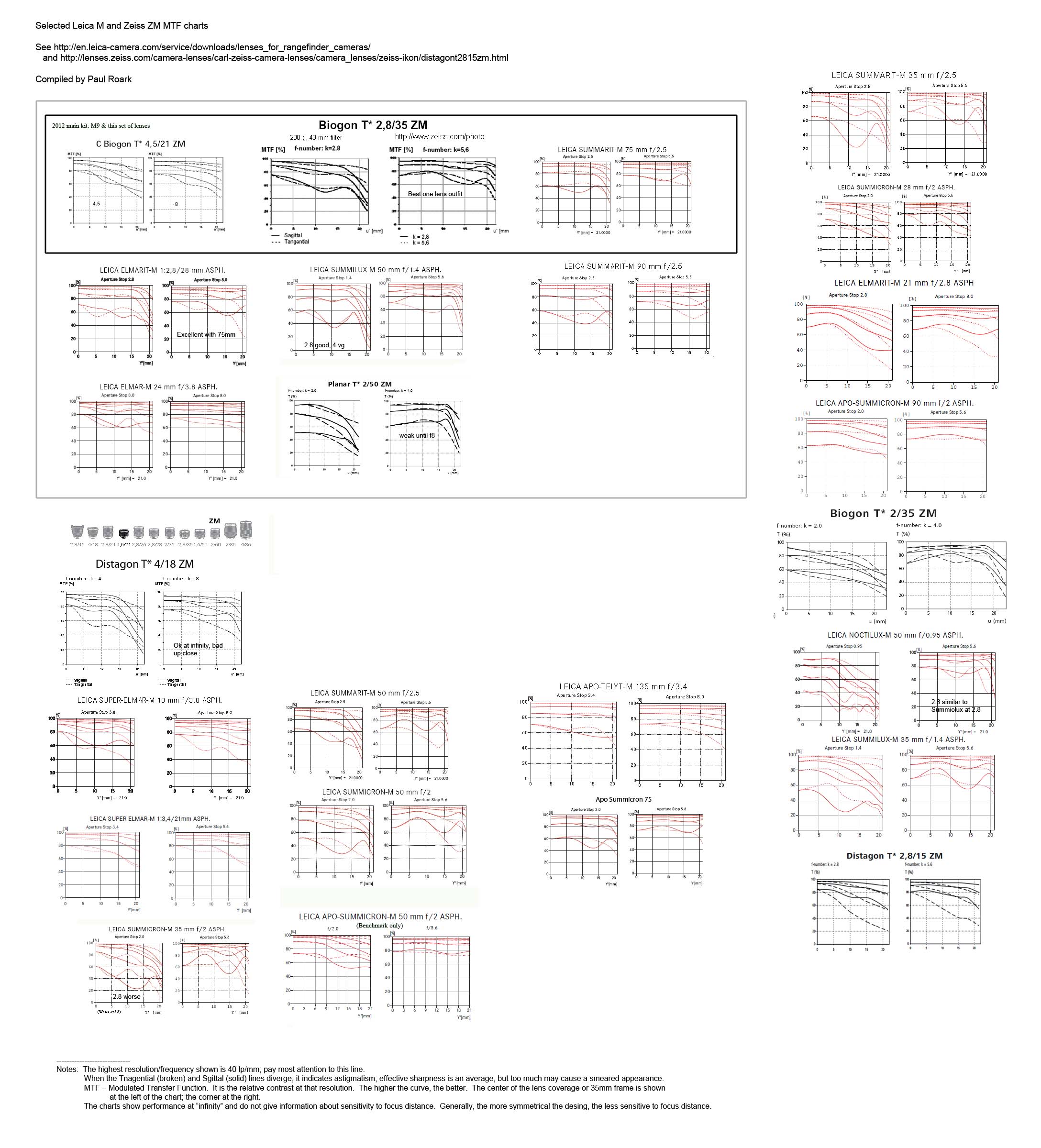 [Author Prev] [Author Next] [Thread Prev] [Thread Next] [Author Index] [Topic Index] [Home] [Search]Chris, One edge is sharper than the other. So, with a sharp ridge at "infinity" I take horizontal and vertical shots of the ridge and compare the edges of the frames at the different apertures. I used to test with resolution charts indoors. If you do that, making sure the film/sensor plane and target are absolutely parallel makes it much tougher. Also, the typically greater curvature of field at close focusing distances introduces more variables. Since the critical edge sharpness for me is usually at infinity -- a mountain ridge -- the method I'm using seems not only easiesr, but also more applicable to my landscape shooting. Paul www.PaulRoark.com On Mon, Jan 7, 2013 at 9:27 PM, Chris Crawford <chris at chriscrawfordphoto.com> wrote: > Paul, > > I'm curious about decentering. How can you detect it by looking at the > photos the lens makes...what does decentering do to the image? > > Thanks, > > -- > Chris Crawford > Fine Art Photography > Fort Wayne, Indiana > 260-437-8990 > > http://www.chriscrawfordphoto.com My portfolio > > http://blog.chriscrawfordphoto.com My latest work! > > http://www.facebook.com/pages/Christopher-Crawford/48229272798 > Become a fan on Facebook > > > > On 1/8/13 12:24 AM, "Paul Roark" <roark.paul at gmail.com> wrote: > >>Mark, >> >>I agree, in general, with what you are saying. However, assembly >>costs of Cosina may be enough less that an equal optic can be made for >>less. Also, Leica can command more for the same just because of the >>name. So, there are differences in both the supply and demand sides >>of the equation that may sometimes modify the strict "you get what you >>pay for" formula, particularly if we are just looking at optical >>performance. >> >>I put a fair amount of weight on the published MTFs of the 2 >>companies. While the MTFs of Leica and Zeiss may not be exactly >>comparable, the main performance variances I've seen from either -- >>actually only Zeiss -- appear to be due to de-centering and focus >>distance sensitivity. Specifically, my Zeiss 50mm f/2 has off-axis >>performance that takes its f/4 performance way below what the MTF >>represented. It is also clearly de-centered, and that may well >>account for the deviation from the published MTF. I buy from >>retailers where I can send things back. I did send 2 of the samples >>back. After the third de-centered sample I gave up and decided for my >>uses and given the budget I had to spend at the time, I'd just accept >>an optic that was barely better than the Canon equivalents, and >>clearly not assembled with the perfection of the sample they tested >>for the published MTF. (I have a sharp mountain ridge view from my >>back yard that easily detects a decentered optic.) >> >>Subsequently, I did purchase a Leica 50 f/1.4 ASPH, and it is the best >>1.4 I've used or tested. However, consistent with it's MTF, I can see >>a dip in performance, particularly wide open, half way out from the >>center to the edge. Also, the Zeiss f/2 is sharper in the center at >>f8. So, the Leica is not a perfect optic by any means (and it's way >>heavier). I might add that I've never had/tested a de-centered Leica >>lens, and the Leica MTF representations have been right-on all the >>time. >> >>The 18 ZM -- my other Zeiss disappointment -- is a retrofocus that is >>simply not good in the corners close up. (My Rollei SL66 50 Distagon >>was terrible there also.) It's a likely eBay item in the future. >> >>On the other hand, the ZM optics I have that are well >>assembled/centered, the Biogons, have relative performances -- Leica >>v. Zeiss v. MTFs -- that were very much predicted by the MTFs the 2 >>companies publish. The 35 f/2.8 Biogon image, in terms of sharpness, >>looks very much like that of the 28mm f/2.8 Elmarit ASPH I also have. >>On the other hand, the published MTF of the 35mm Summarit 2.5 is very >>unimpressive wide open -- sufficiently so that I am not interested. I >>believe Leica here and appreciate their honesty. I also believe >>Leica's MTF for its 35 f/2, and at f/2 it is not good enough to pay >>for given my usual landscape shooting. So, the Zeiss simply seemed >>to have the best combination of price and performance for my uses at >>this focal length. Same with the 21mm focal length. >> >>Down the road I may find that the Zeiss optics fall apart, whereas the >>Leica ones are far more robust; they do have that feel. So, far, >>however, the Zeiss Biogons I have deliver performances that are right >>up with the very good Leica optics but at a lower price, and so far >>they have held up fine. >> >>So, I tend to pick the optics based on the MTF as well as price. I >>don't expect magic from either (or any) company. >> >>For those interested, I've posted a Jpeg containing copies of the MTF >>charts of the optics I have and others of interest from Leica & Zeiss. >> See http://www.paulroark.com/BW-Info/Leica-Zeiss-MTF.jpg . >> >>Paul >>www.PaulRoark.com >> >>_______________________________________________ >>Leica Users Group. >>See http://leica-users.org/mailman/listinfo/lug for more information > > > > _______________________________________________ > Leica Users Group. > See http://leica-users.org/mailman/listinfo/lug for more information